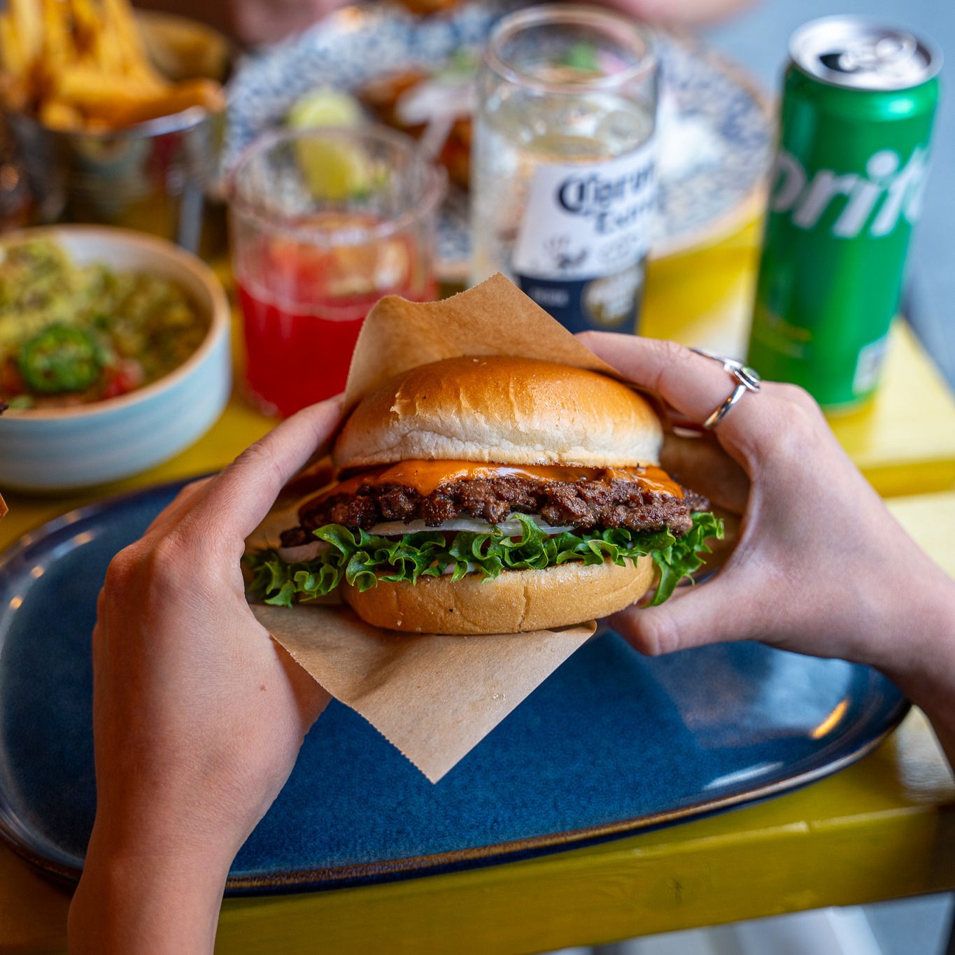 The Border på Södermalm Skanstull – restaurangen där USA möter Mexiko. Hängmörade smashburgare, mexikanska burritos och birria tacos med äkta smak. Perfekt för lunch, middag eller takeaway i Stockholm.